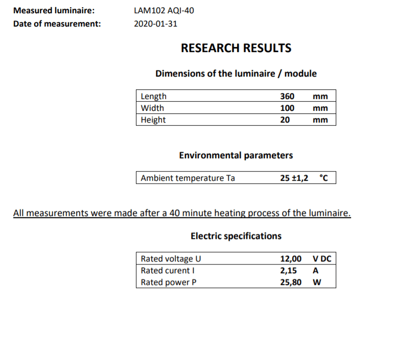 Badania wykonane przez niezależne Laboratorium Fotometryczne